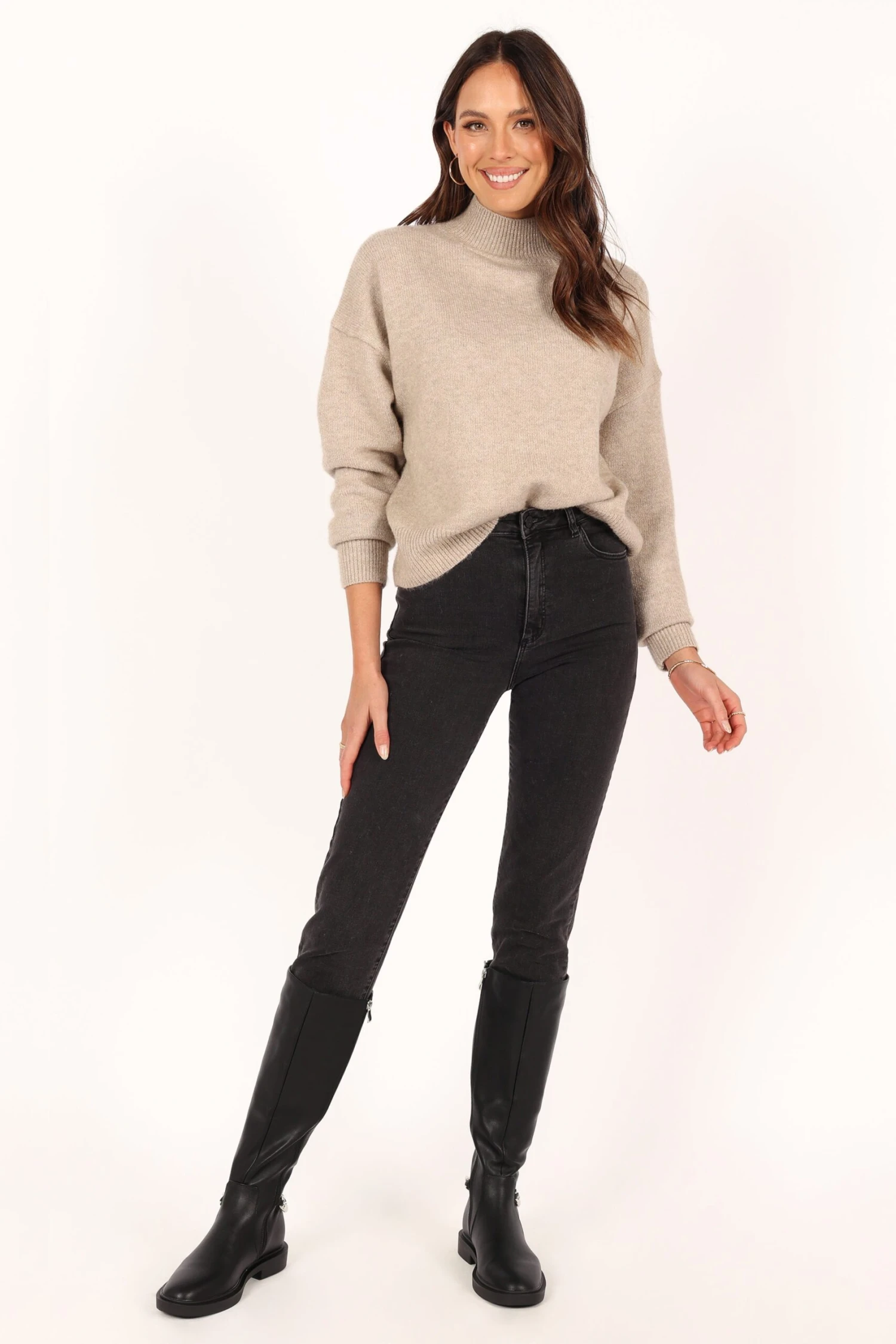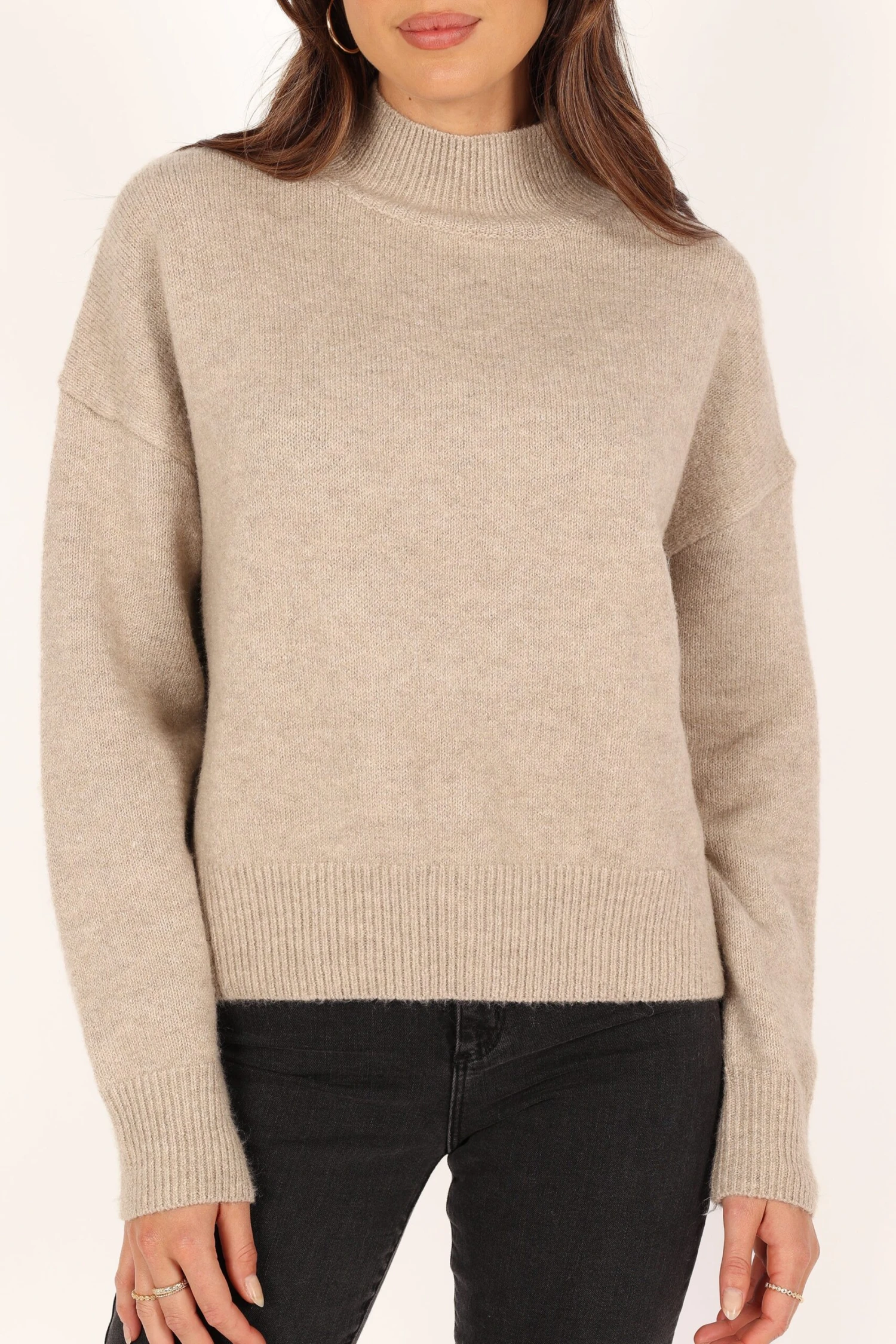 | DETAILS Introducing the perfect winter wardrobe staple – this knit sweater! Crafted from a soft, comfortable fabric with classic ribbed cuffs, hemline and mockneck neckline, the relaxed fit is designed to keep you warm without compromising on style.