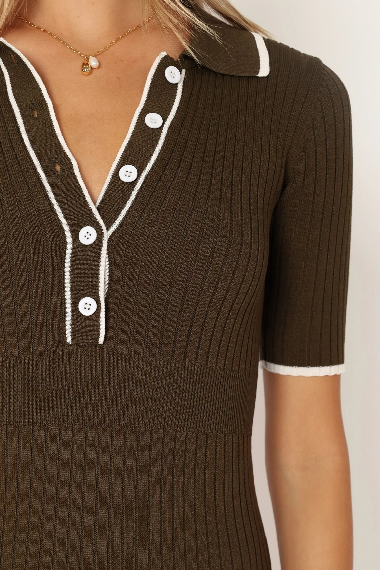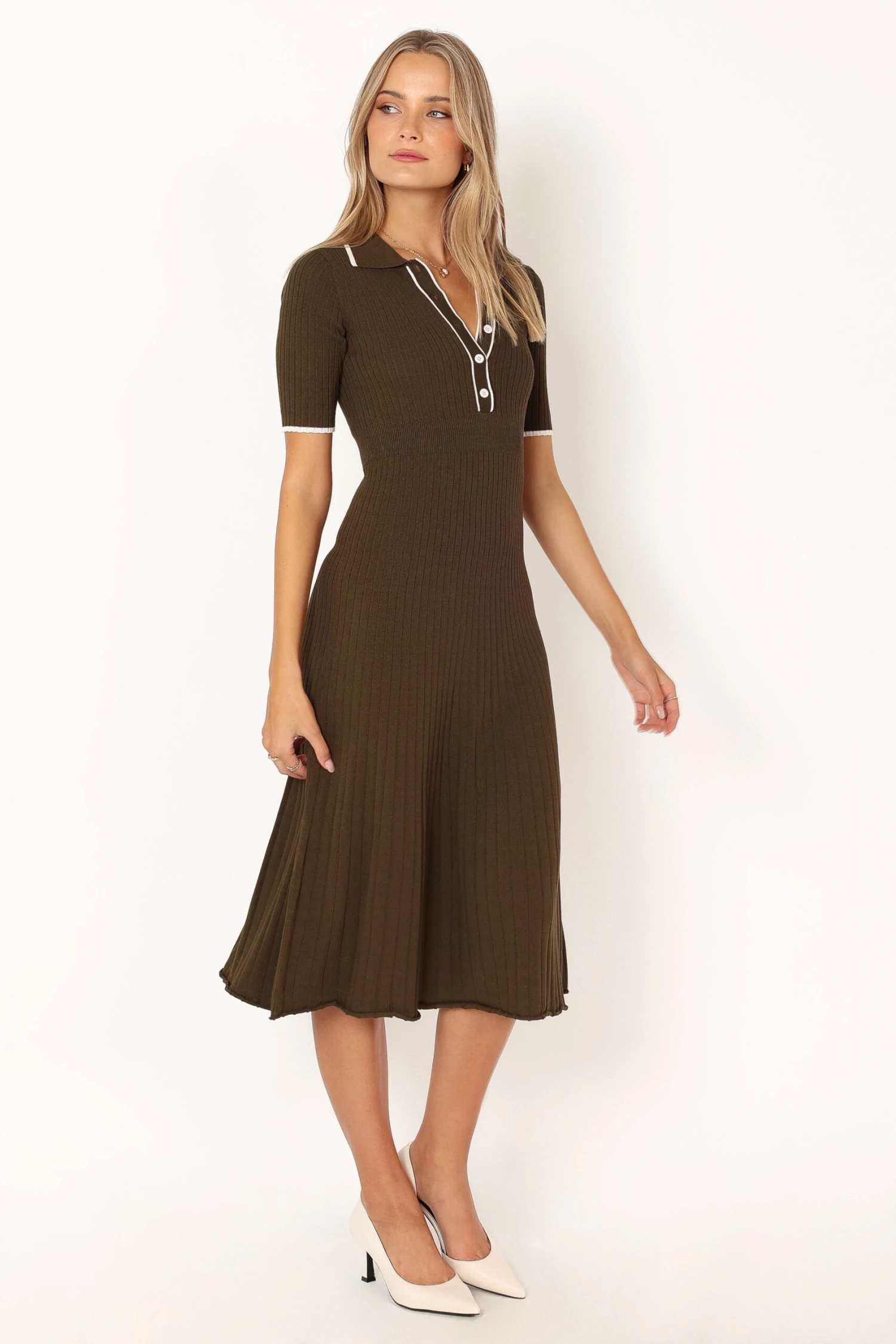 | DETAILS You’ll be ready for any occasion in this gorgeous midi dress! The classic olive color is timeless and flattering, pairing perfectly with the stretch ribbed knit material that hugs your curves to create an effortlessly stylish silhouette
