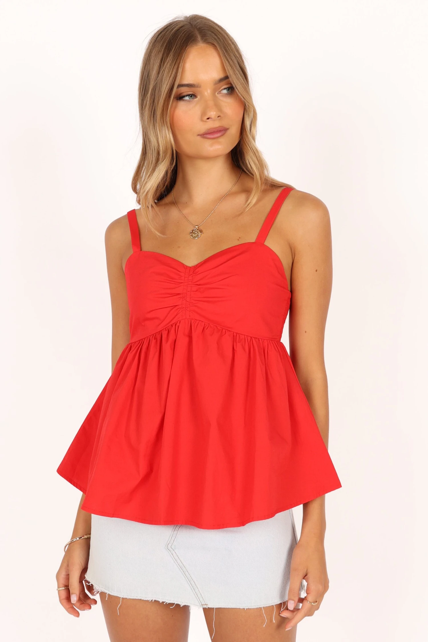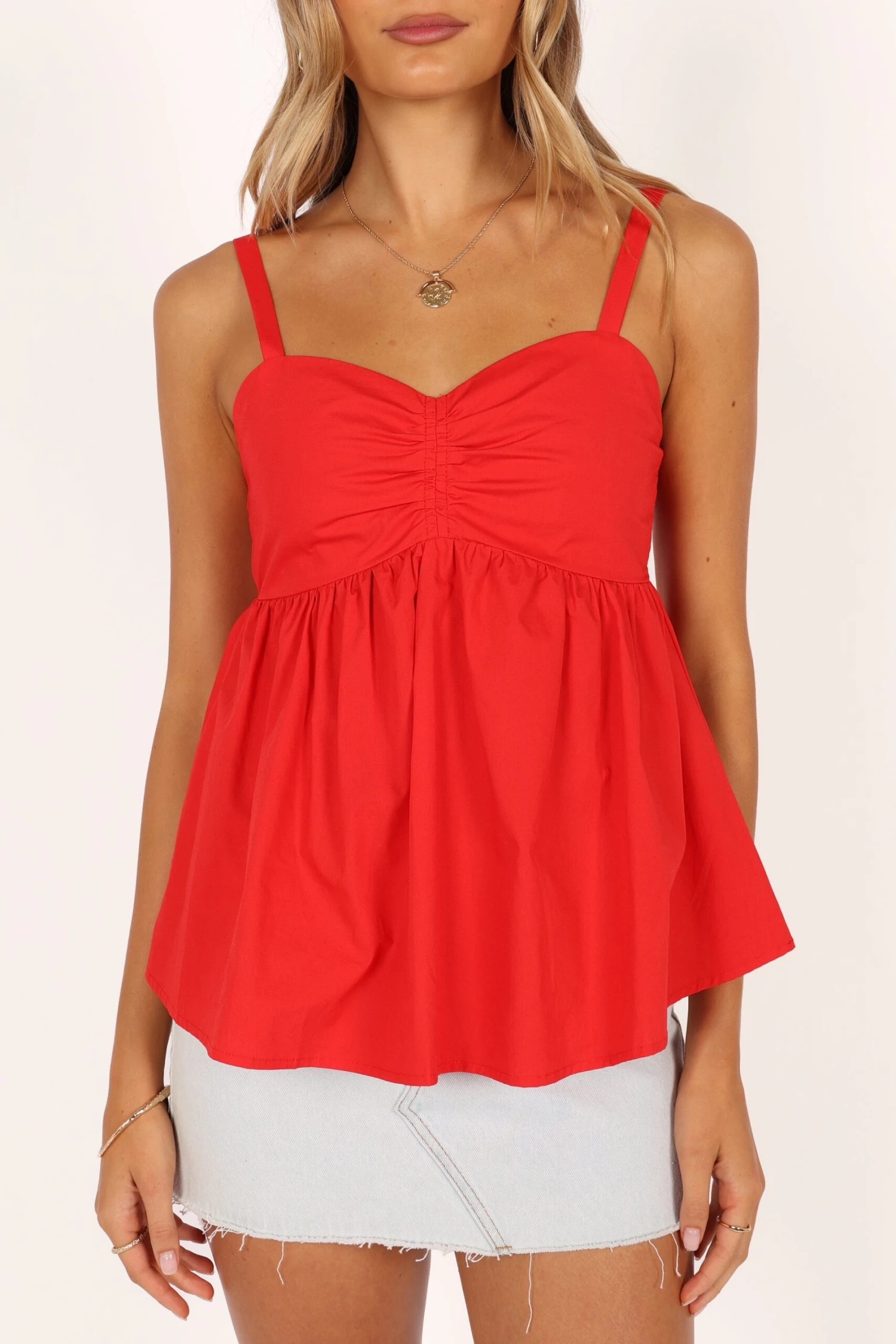 | DETAILS Show off your feminine side in this sweet babydoll top! Its flirty silhouette features a classic sweetheart neckline, thin adjustable straps and an ultra-feminine shirred back panel that shapes to your body.