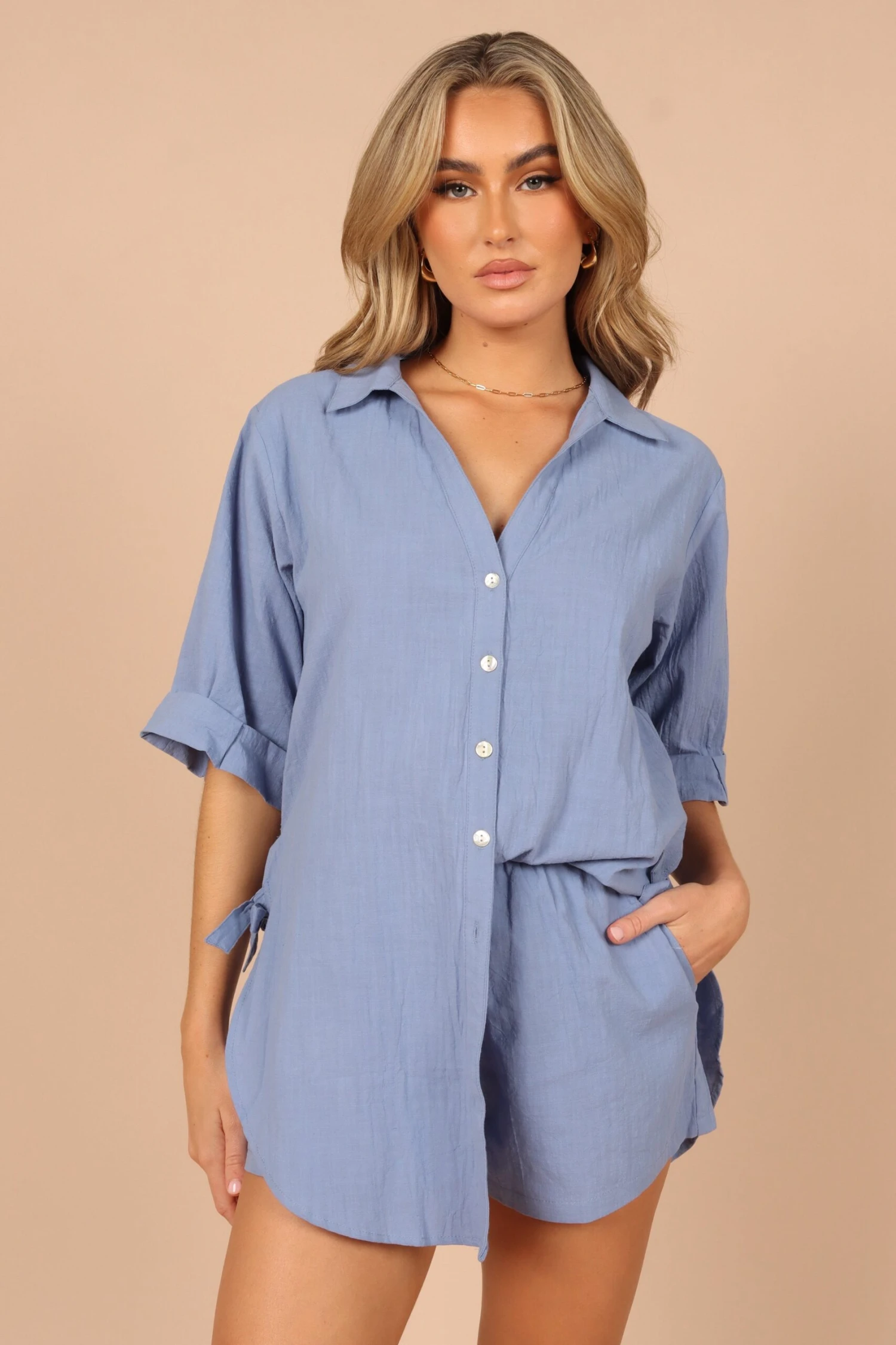 | DETAILS Show off your chic style with this collared top! Featuring a flattering v neckline, mid length sleeves with roll cuff and functional buttons down the front, this must-have piece is sure to turn heads.