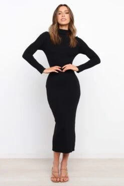 | DETAILS This season, make a statement in this stunning Off Shoulder Bodycon Midi Dress. This elegant piece features long sleeves and is crafted from a stretch ribbed knit fabric that hugs your curves in all the right places for an ultra-flattering silhouette.