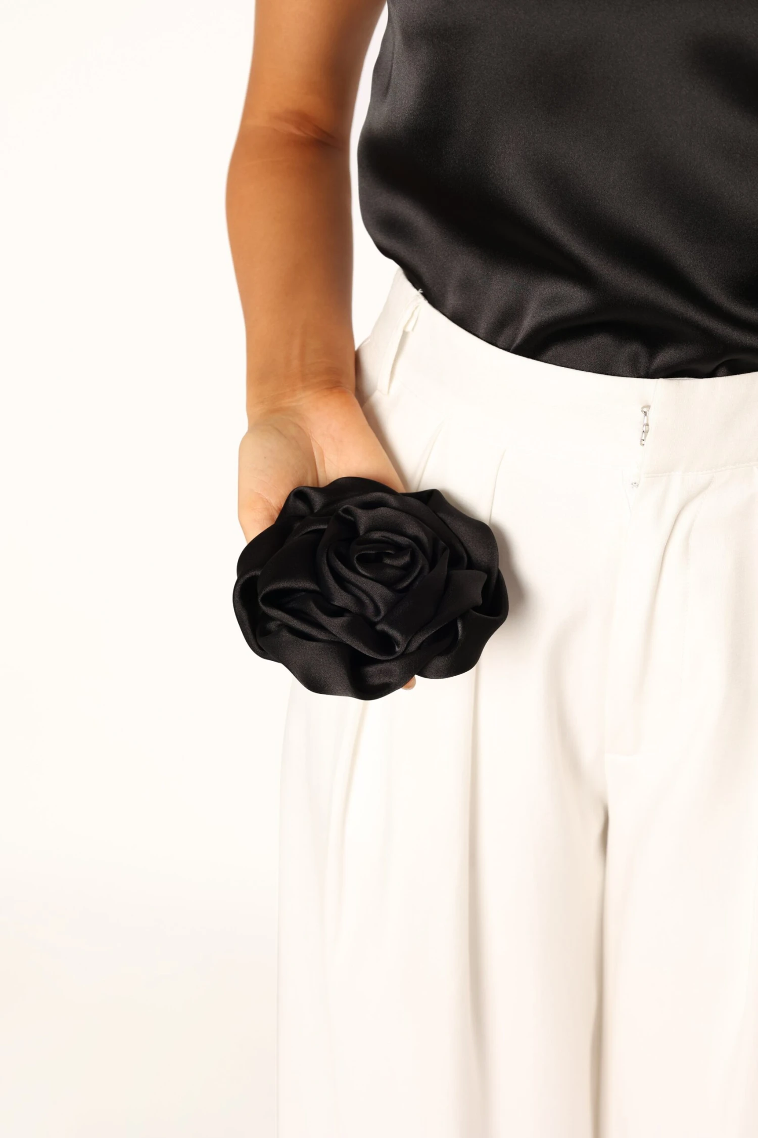| DETAILS This halterneck top is perfect for dressy occasions. Its thin adjustable straps provide a secure fit and an invisible side zip offers easy wearability. A detachable rosette on the bust adds a touch of glamour, while its soft satin feel ensures comfort throughout the night.