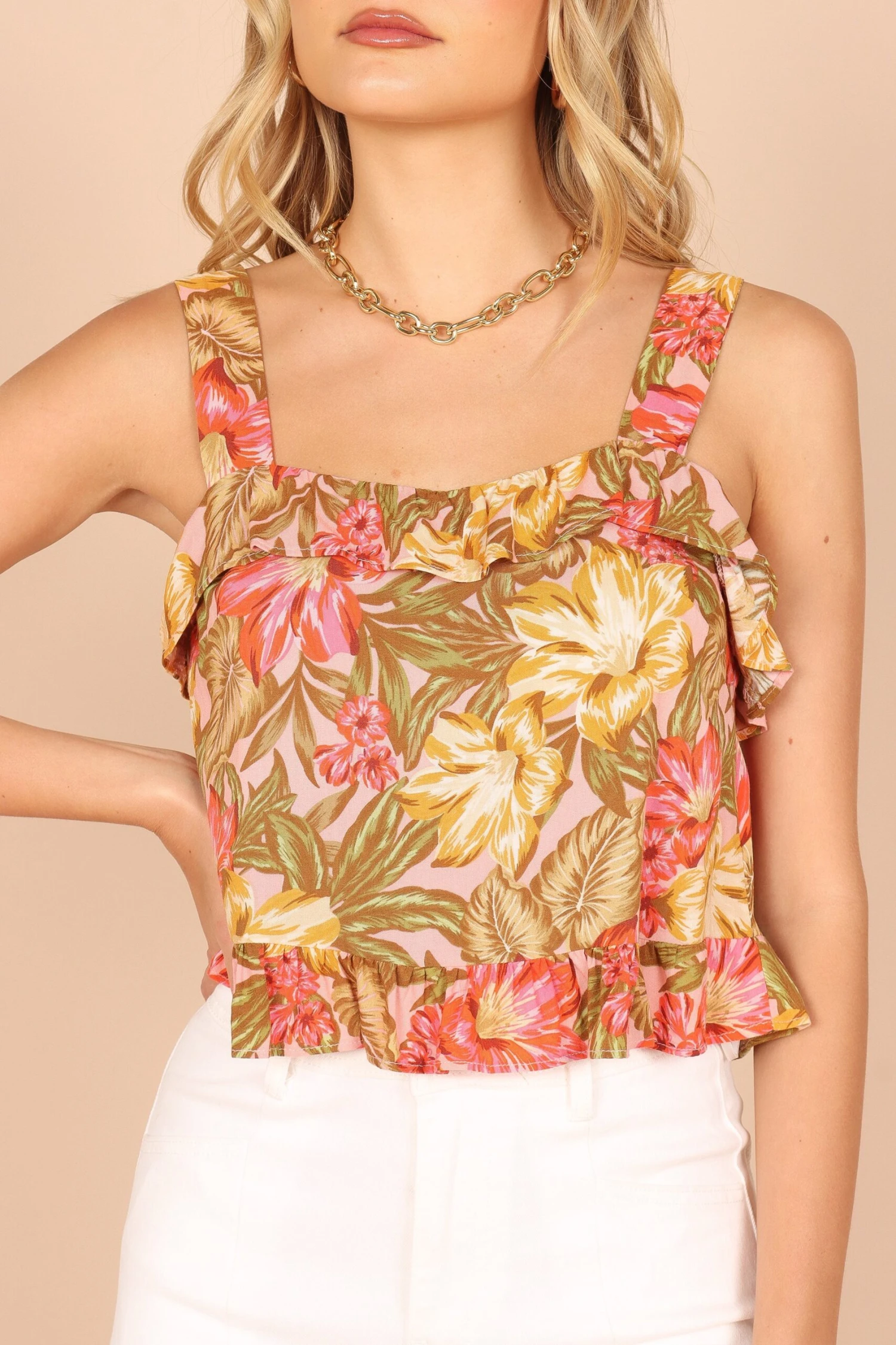 | DETAILS This crop top is all about laidback summer vibes and pretty style! Sporting a sweetheart neckline, thick non-adjustable straps and frill detail, this crop top is an easy way to add some fun flirty flair to your wardrobe.