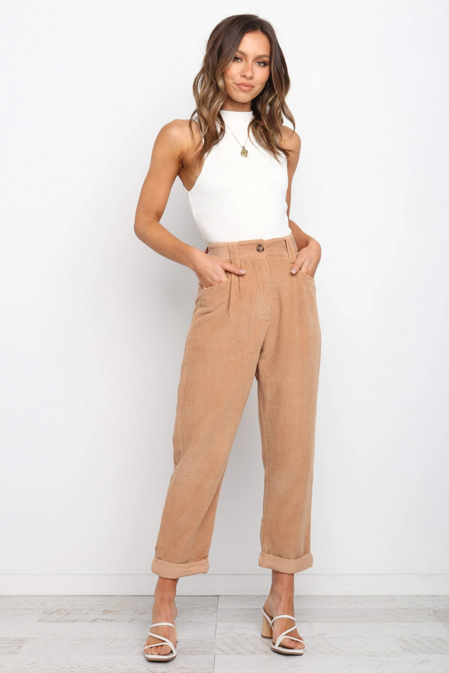 | DETAILS These pants are about to become your go-to pants for any occasion! Crafted from our signature corduroy style fabric, these pants feature belt loops and a zipper fly with a button close. They also have a relaxed fit that’s easy to move around in while still looking fashionable.